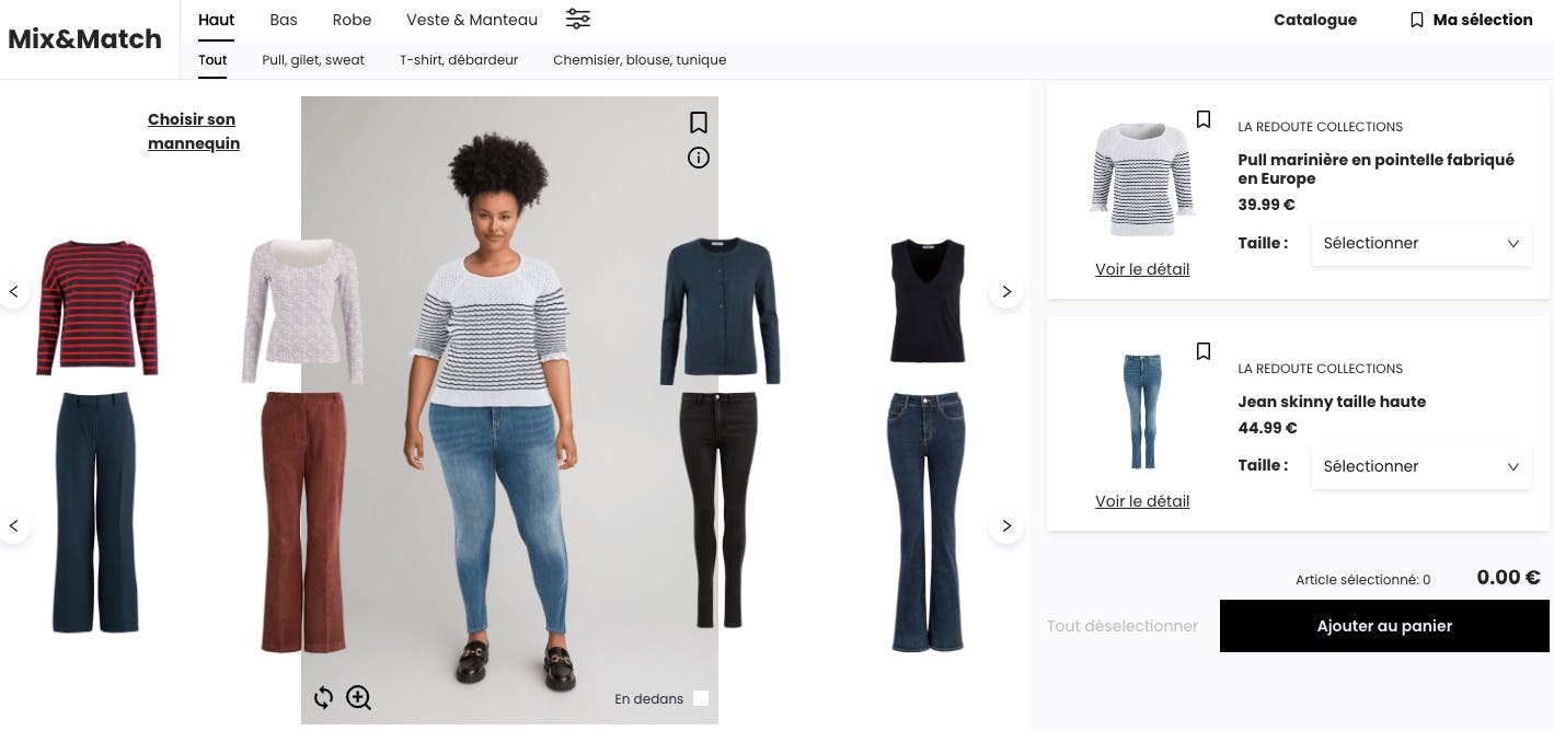 Dans le secteur de la mode, La Redoute, un important détaillant français, a proposé à ses clients l'expérience Mix&Match créée par Veesual.