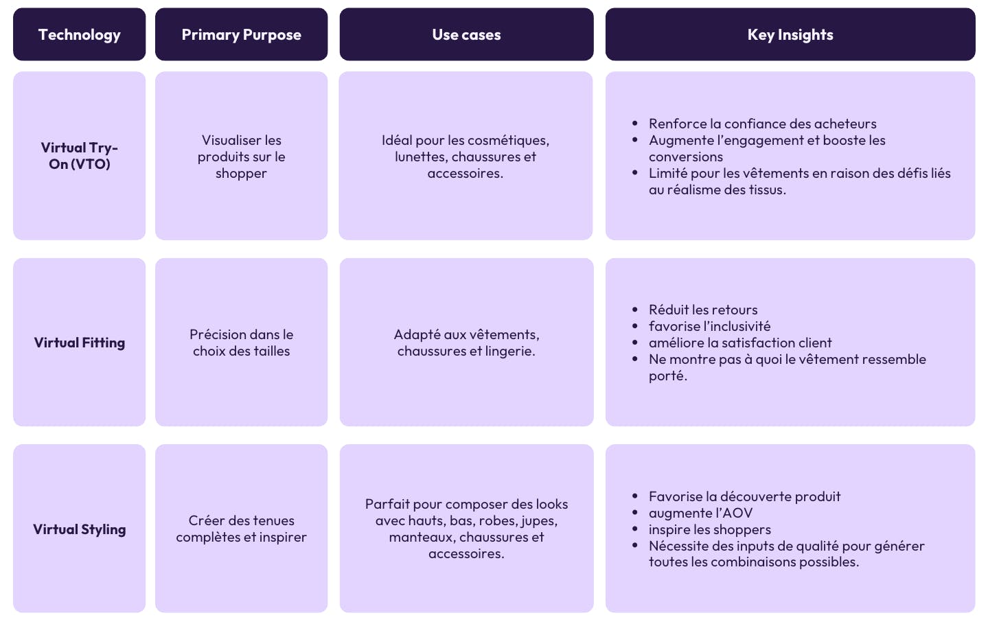 Le Virtual Try-On, le Virtual Fitting, et le Virtual Styling ont chacun un rôle unique à jouer dans l’e-commerce. Parmi ces technologies, le le Virtual Styling se distingue par son impact sur l’engagement, la découverte produit et le panier moyen. En intégrant ces solutions, les marques peuvent transformer leur expérience client et répondre aux attentes croissantes des consommateurs.