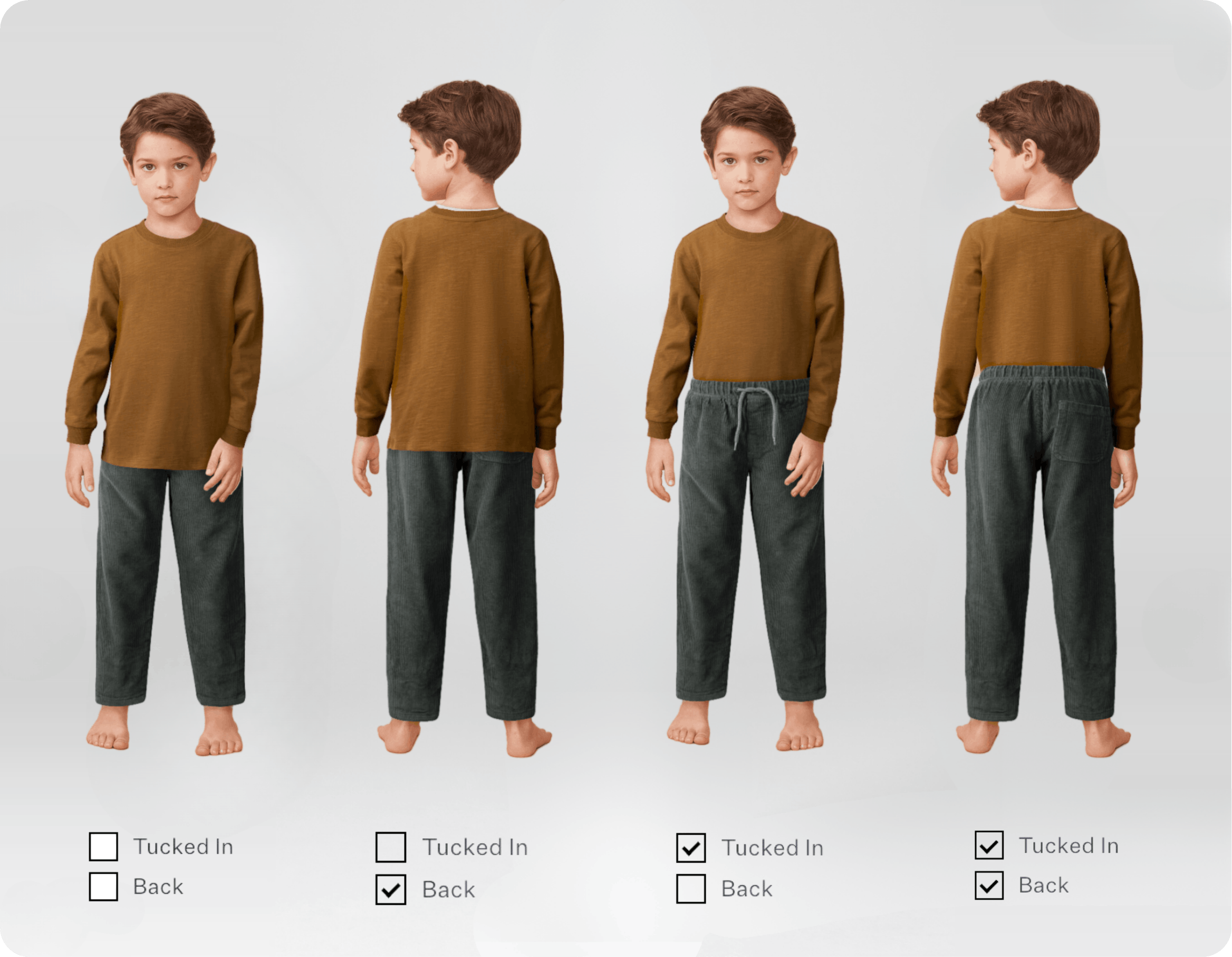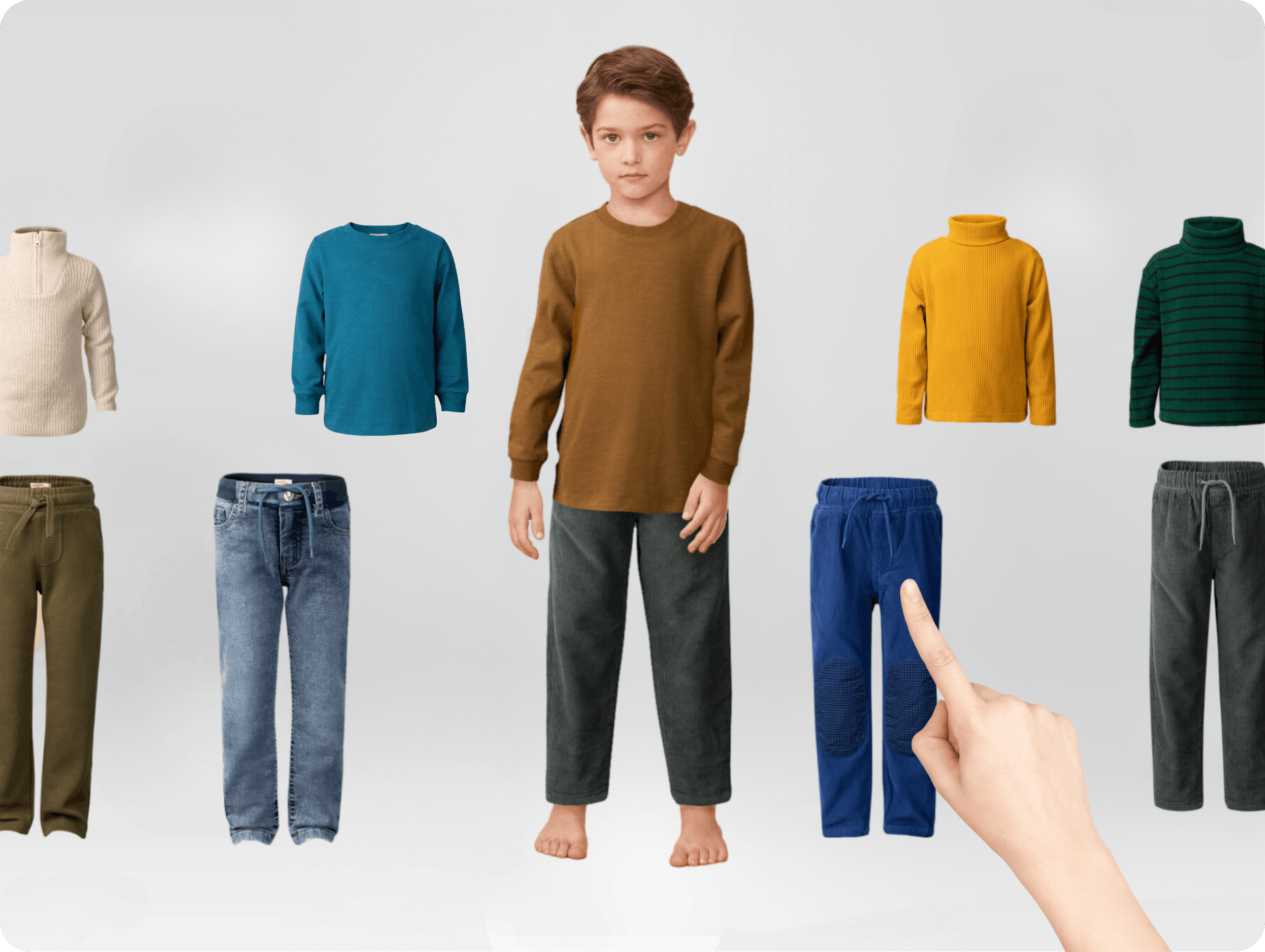 Bring your collection to life on any childâs silhouette by combining product packshots with child model images.