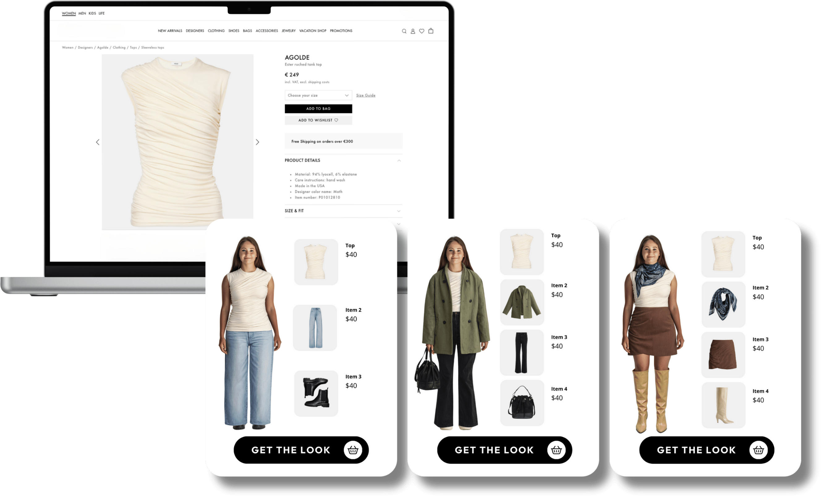 Enhance Product Pages with On-Model Outfit Recommendations to inspire, engage, and increase AOV.