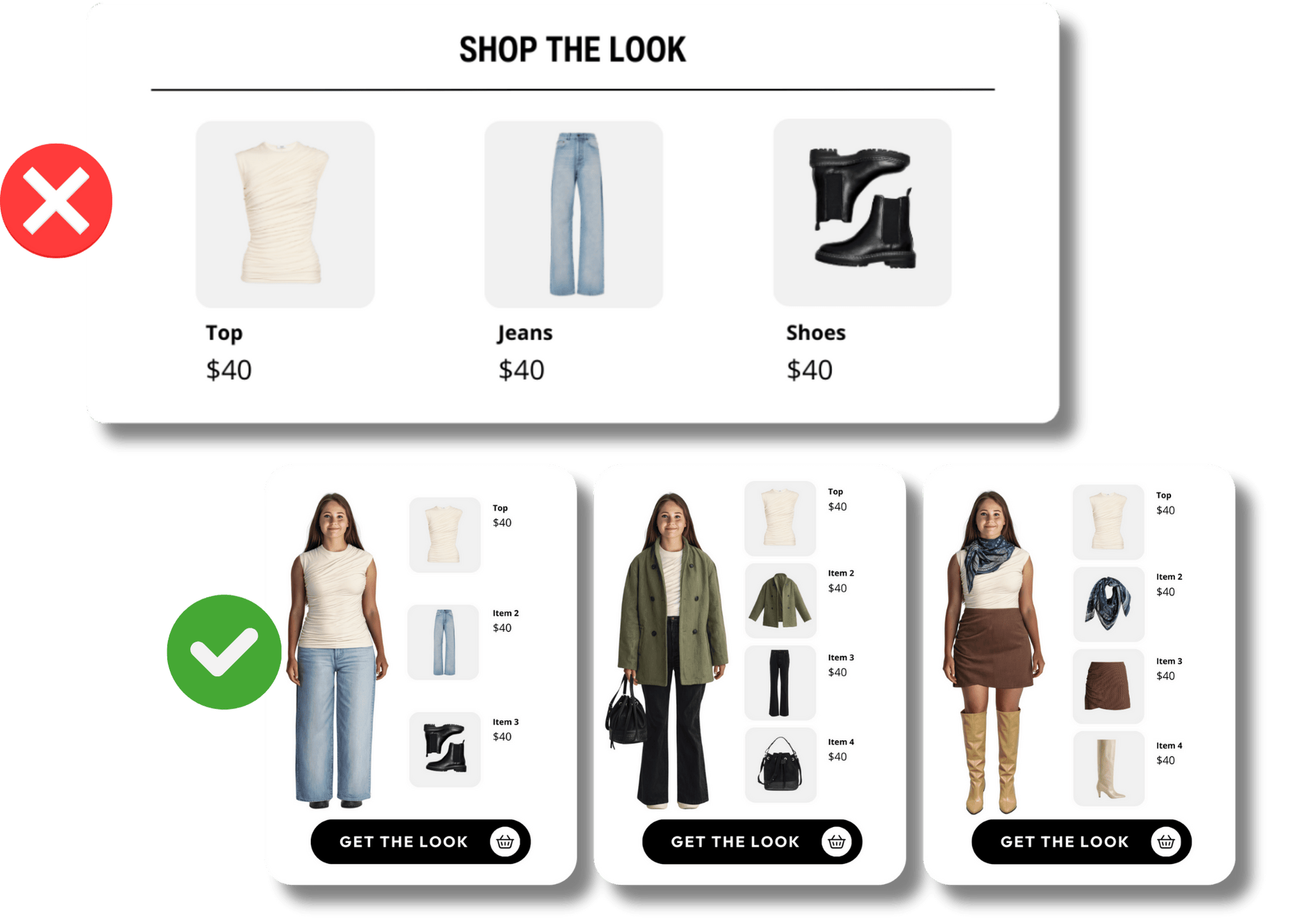 Fashion brands use ‘Shop the Look’ to increase AOV, but these sections often underperform and isolated packshots fail to engage shoppers or help them visualize outfits.