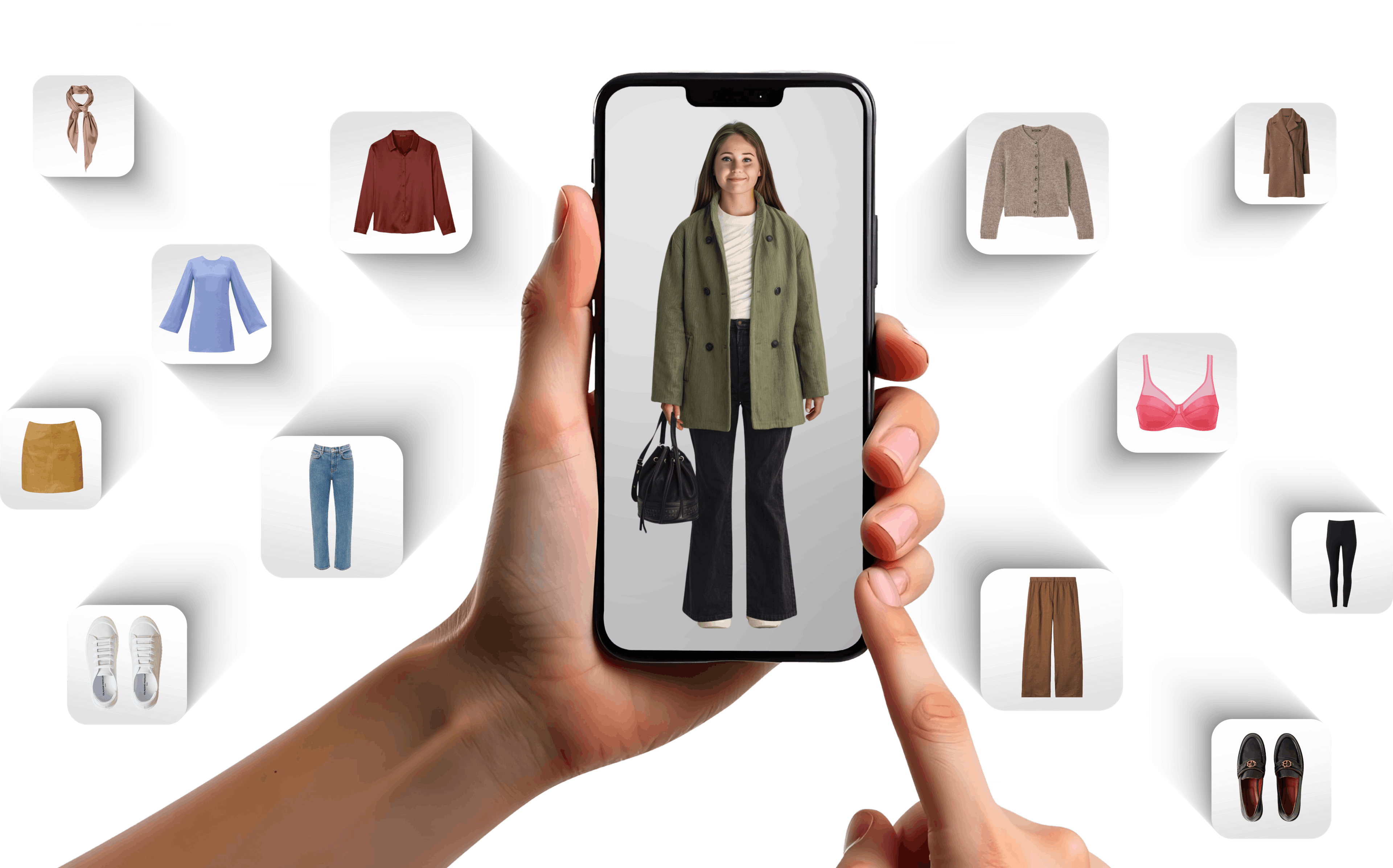 Shoppers can seamlessly choose from a diverse range of models, swipe through tops, bottoms, outerwear, and accessories to build their perfect look from your collection.