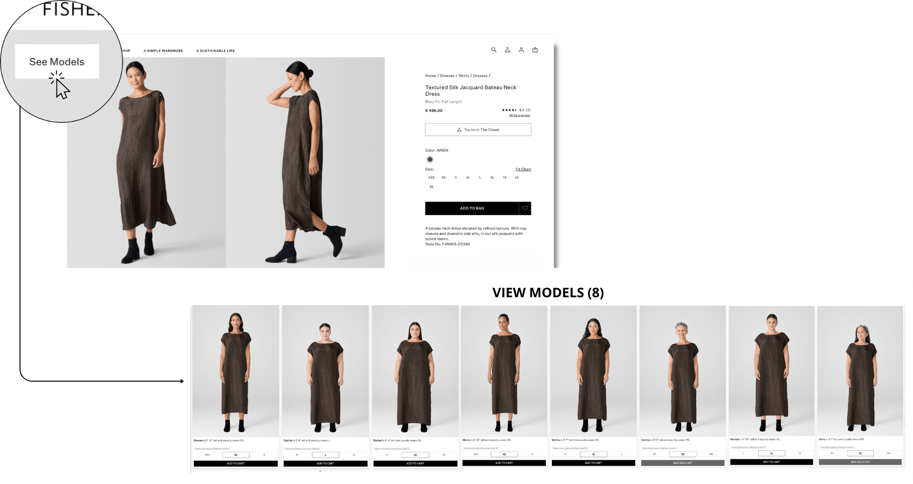 Shoppers can select models from both product and category pages, creating a personalized experience that builds trust and engagement.